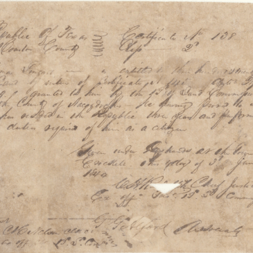 Or, Subtitled: “Situated in Cherokee County on the waters of the River Neches north of the San Antonio Road and about 6½ miles SE from Rusk” So on to Texas, the final destination in the life journey of Thomas Lewis Leonard and wife Sarah Lauderdale: as the previous posting shows, on 6 May 1839 Thomas … More Thomas Lewis Leonard (1781-1870), Son of Thomas Leonard and Hannah James: Nacogdoches and Cherokee County, Texas, Years, 1839-1870