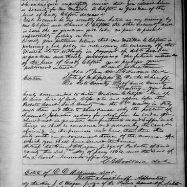 Or, Subtitled: “He has recently been hated as an enemy by Mrs. Clifton and Thomas L. Clifton the other Security” As the previous posting shows, Thomas Leonard and Sarah Lauderdale’s daughter Matilda Caroline married Cordy Claiborne Clifton on 12 July 1831 in Limestone County, Alabama, and then moved with him to DeSoto County, Mississippi, where … More Matilda Caroline and Minerva D. Leonard and Husbands Cordy Claiborne Clifton and Samuel Johnston: Interesting Civil War Records of a Family Dispute