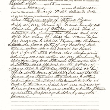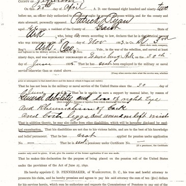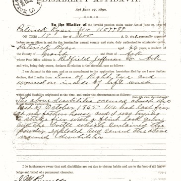 More tying up loose ends from the Civil War pension files of my grandmother’s uncle Patrick Ryan and his wife Delilah Rinehart (if you’re just now seeing this series of posting, this is #7 in the series; you may want to click and read the preceding postings for background):