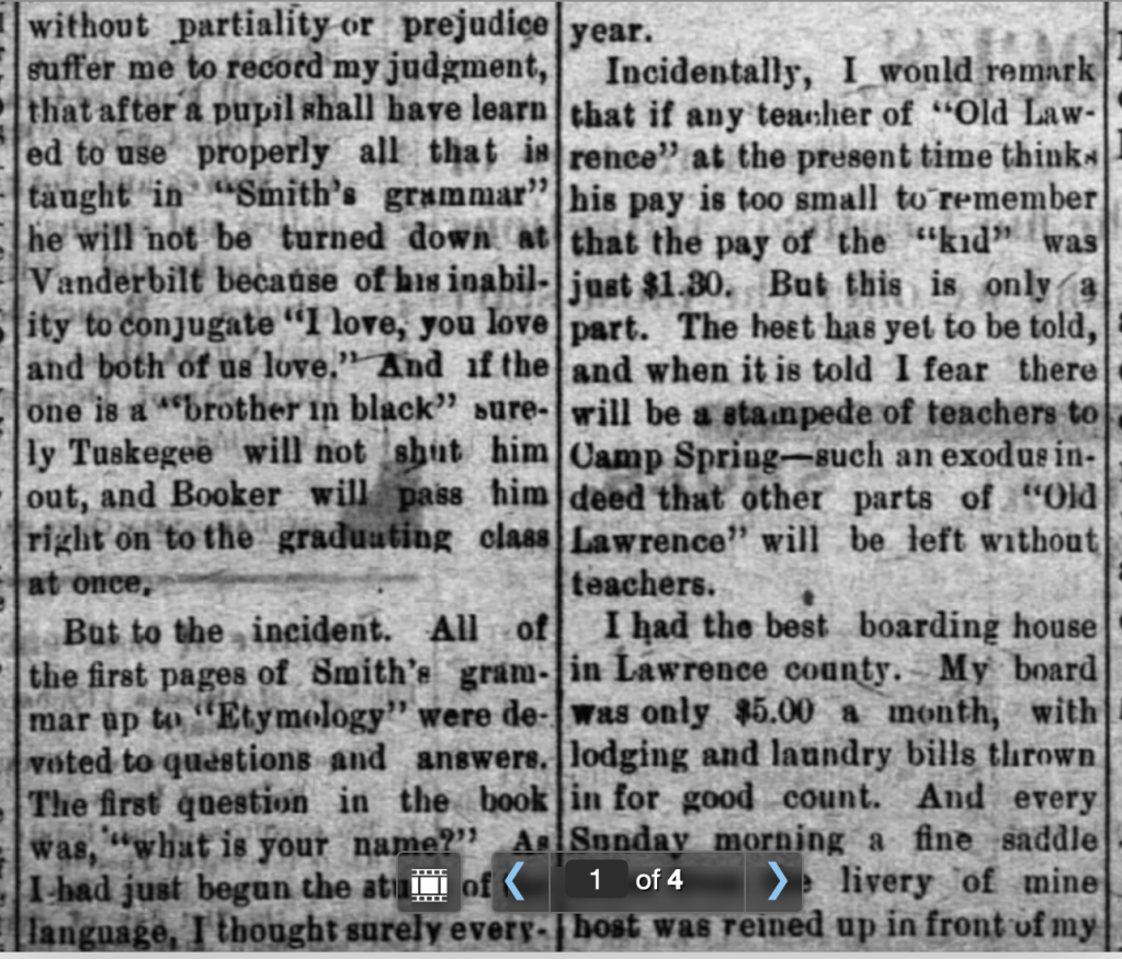 [5] S.W. Barbee, “Old Lawrence Reminiscent,” Moulton Advertiser (16 February 1909), p. 1, col. 3-6.