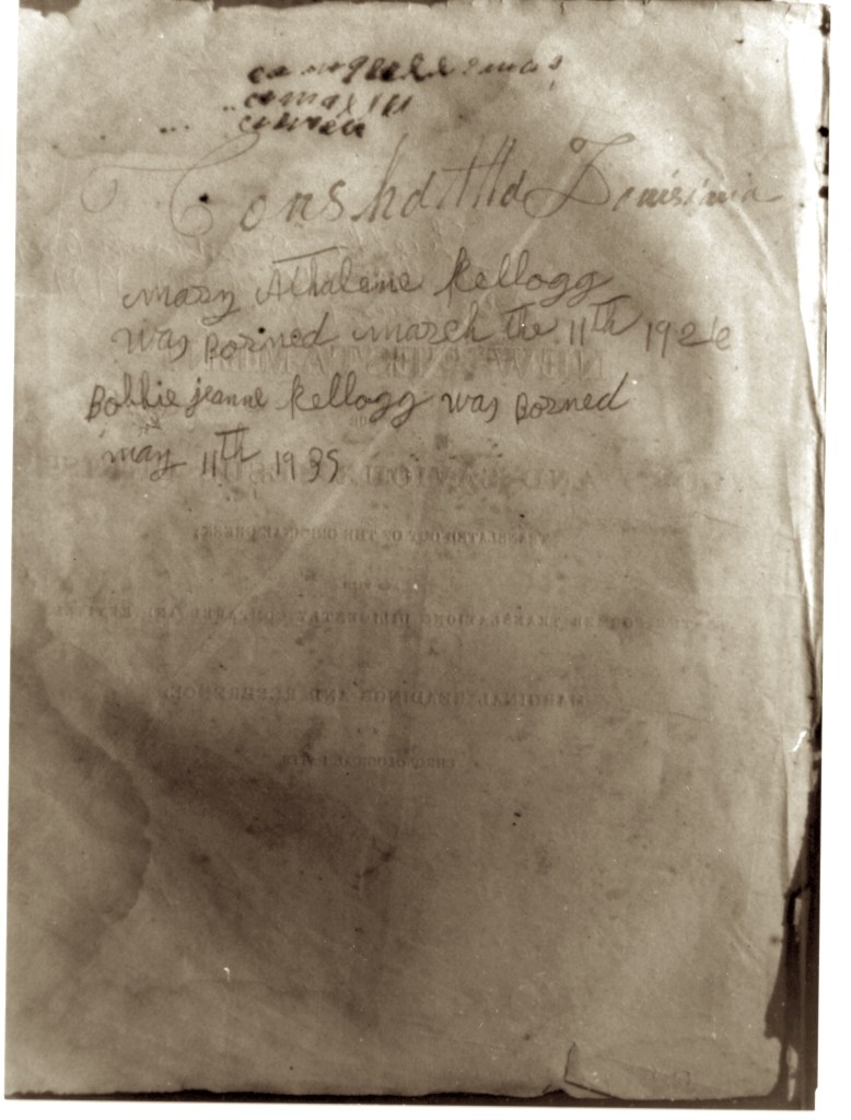 Joshua D. Whitehouse has helpfully uploaded digital images of a number of pages of this bible register to his “Kellogg Family Tree” at Ancestry. Photocopies of two additional pages from the bible register appear in Henry C. Lindsey’s The Mark Lindsey Heritage.[1] He photocopied these from the bible register itself on a visit to Barbara Morgan Kellogg.[2]
