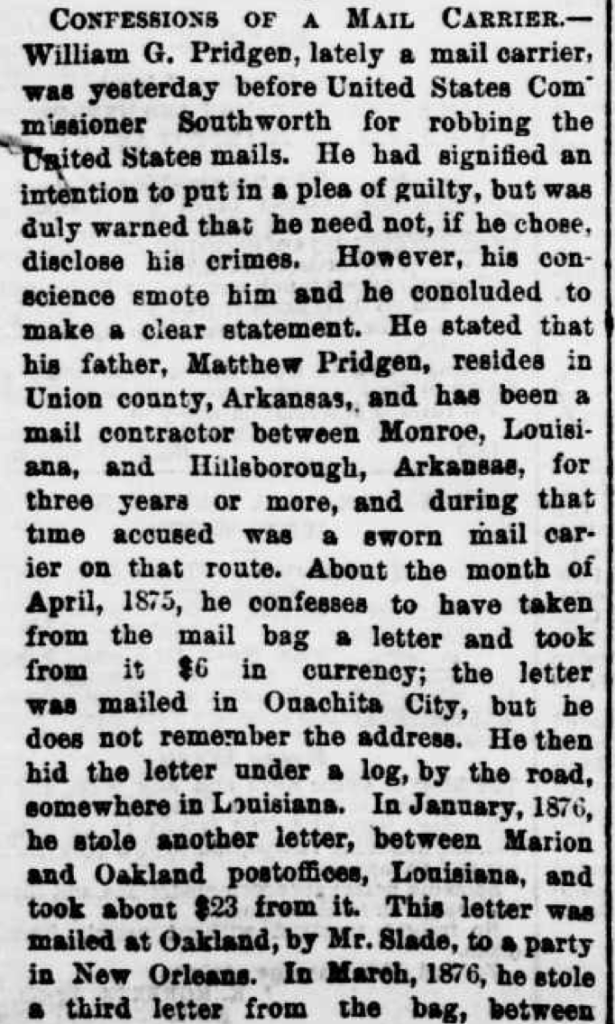 [7] “Confessions of a Mail Carrier,” New Orleans Republican (23 August 1876), p. 3, col. 1-2.