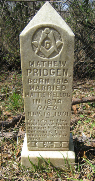 1. Martha Ann Kellogg was born 20 January 1850 in Itawamba County, Mississippi, and died 30 January 1936 at Provencal in Natchitoches Parish, Louisiana, where she’s buried in Provencal cemetery with her husband Matthew W. Pridgen. The couple married on 24 August 1871 in Red River Parish.