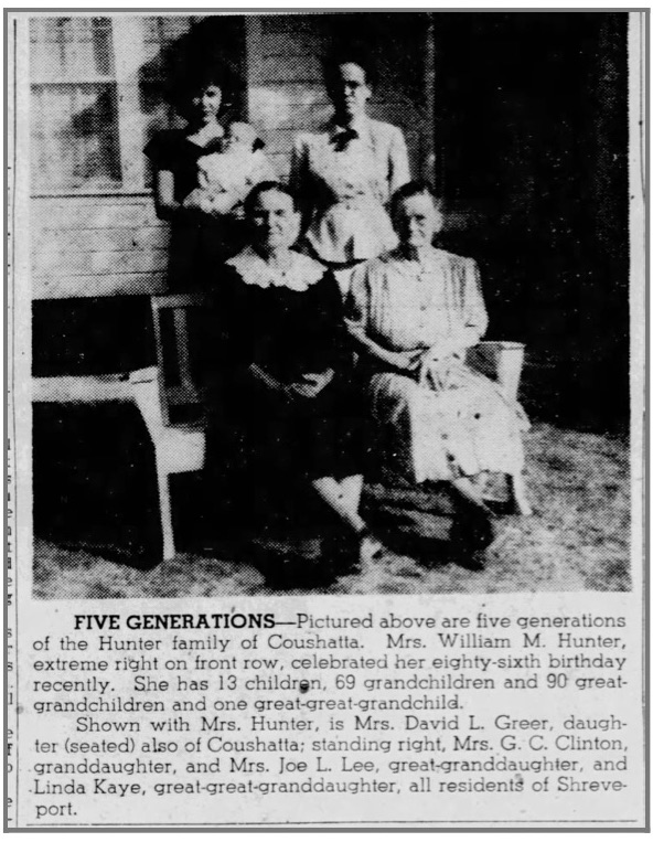 [10] Barney Hunter, “Hunter Family,” in Red River Parish: Our Heritage, p. 252. The photo also appears in Henry C. Lindsey, Mark Lindsey Heritage, p. 108.