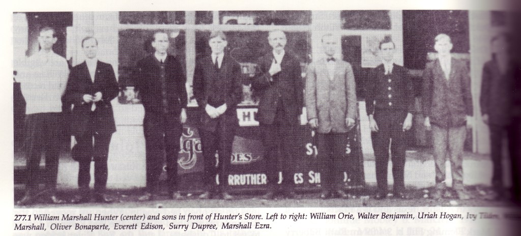 Marshall Hunter has been discussed in a number of previous postings, one noting that a 1 May 1877 letter of his aunt Sarah Lindsey Speake to his mother Margaret Lindsey Hunter notes that he was leaving home (or had recently done so), and that his mother and aunt were worried about his being ruined by bad associations. Another posting discussed a murder that occurred in front of Marshall Hunter’s store on 22 June 1900, in which Marshall’s nephew Dick Kellogg shot Frank Wren.
