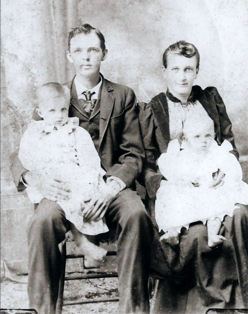 Ida Mae (married Elbert Luther Snead, son of Henry Clay Snead and Lucy Frances Harris); William Orie (married Sarah E. Crawford, daughter of Grosvenor Brown Crawford and Elizabeth Emma Amelia Green); Walter Benjamin (married Margaret Sue Edwards, daughter of William Allison Edwards and Susan James Morphis); Uriah Hogan (married Dora Ann Jones, daughter of Francis Marion Jones and Lula L. Adams; Osie Lee (married David Lafayette Greer, son of William Martin Greer and Martha Elizabeth Waters); Ivy Tilden (married Susan Lou Orr, daughter of Samuel Collier Orr and Margaret Almedia Fletcher); QRetta (married Buren Simeon Snead, son of Henry Clay Snead and Lucy Frances Harris); Oliver Bonaparte (married Lavada Artimatha Breedlove, daughter of John Alfred Breedlove and Margaret Melvina Pickett); Edison Everett (married 1] Cora Jane Jones and 2] Floria Livonia Jones, both daughters of Francis Marion Jones and Lula L. Adams); Susie Mae Margaret; Surrey Dupree (married Gladys Grace Hawthorne, daughter of Emery Waltarn Hawthorne and Florence Verona McDonald); Marshall Ezra (married Willie Mae Greer, daughter of Virgil Jerome Greer and Mary Ann Holley); and Laura Jane (married Phillip Long Morgan, son of Jefferson Davis Morgan and Mary Lousetta Jerusha Loftin).