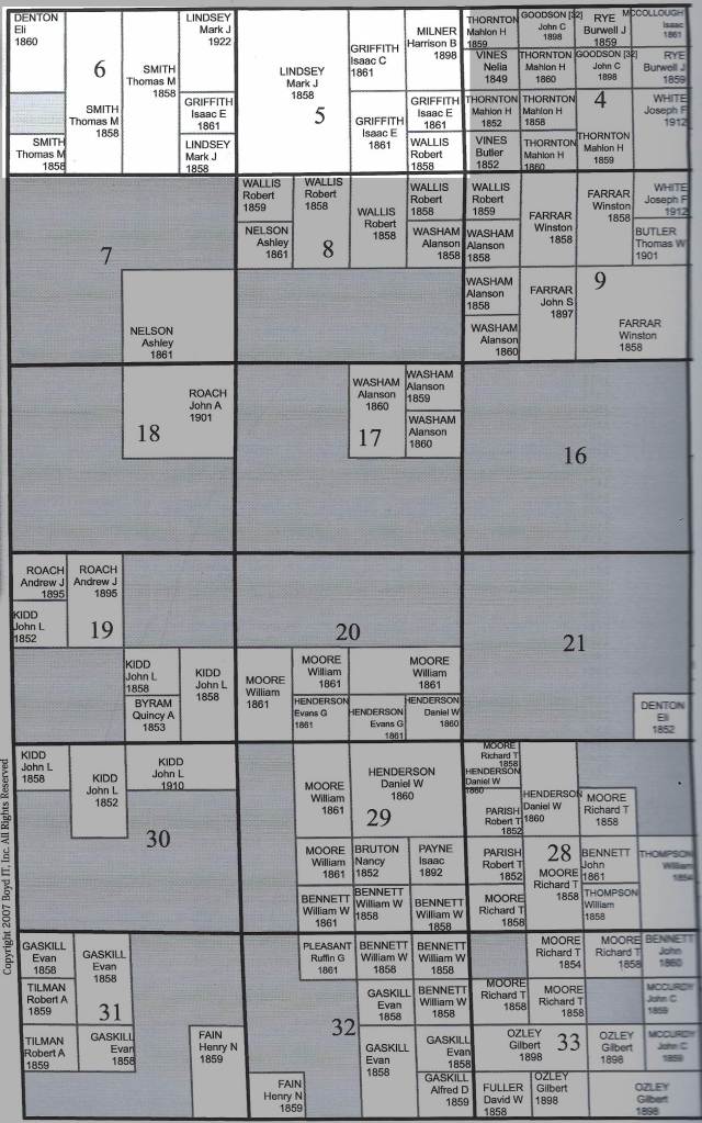 Mark appears to have sold both of the preceding tracts in Union Parish to Thomas Mercer Smith of the same parish on 31 January 1857 — that is, before he even had in hand the certificate for the second tract. Union Parish conveyance records show Mark on that date selling Smith both pieces of land for $460, with the deed stating that Mark lived in Union Parish.[18] At some point during his sojourn in Claiborne and Union Parish, Mark also apparently tried to patent land in section 6, township 14 north, range 5 west, with the patent being cancelled.[19]