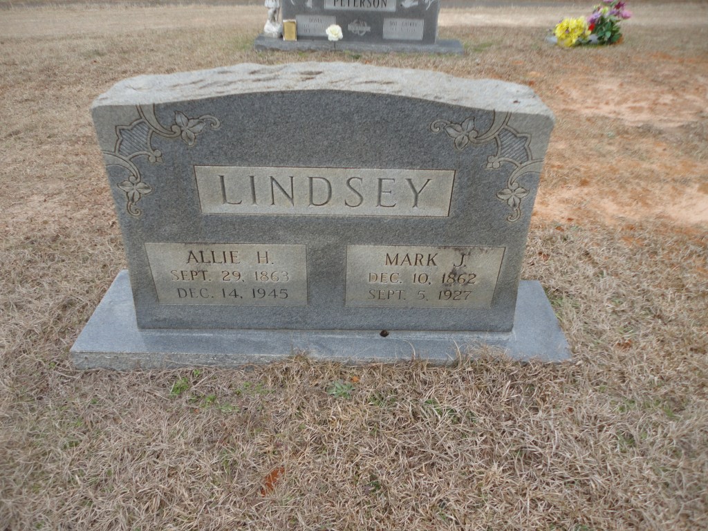 [41] Mark’s death certificate gives his year of birth incorrectly as 1858, stating that his parents were Jim [sic] Lindsay and Mary Harrison. Mark’s tombstone in Carolina Baptist cemetery at Saline, Bienville Parish, Louisiana, gives his birthdate as 10 December 1862 and his date of death as 5 September 1927. Mark’s death certificate says that he died 4 September 1927.