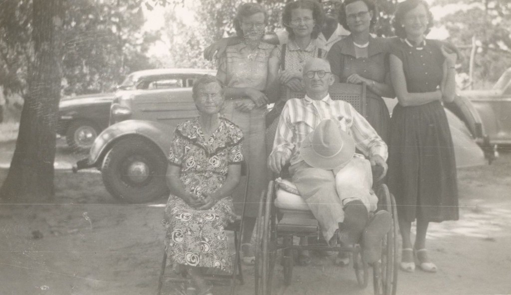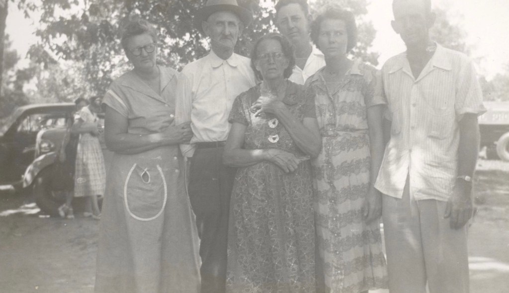 Following his marriage to Ava, by whom he had five children, Sam farmed and also worked for a time as a barber in Coushatta. He also opened a store in Coushatta and was the town’s marshal for 16 years.[3] I have fond memories of visiting Uncle Sam and Aunt Lorena, who won my heart on one visit by bringing me gingerbread hot from the oven as I sat on their porch swinging in the porch swing. Sam was a gentlemanly, cordial old fellow who could tell hilarious stories, and loved to laugh. As the patriarch of the family — the oldest son of Alex and Mollie — he presided at the annual family reunion the descendants of Alex and Mollie were holding each October in my childhood, and insisted that the “ball” (i.e., dance) that was part of the reunion not begin until he had surveyed the room and chosen, as he liked to announce, the prettiest woman in the room to dance with him and open the ball.