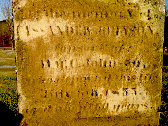 5. Elvira Johnson was born about 11 March 1829 in Laurens County, South Carolina, and died 6 December 1856 in Cass County, Georgia. Elvira’s tombstone in Oothcalooga Baptist cemetery has been mistranscribed as a tombstone erected in memory of a Claire Johnson. Though the stone is now weathered and somewhat eroded, a close look at photographs of it shows that the name on the stone is Elvira and not Claire. The stone also appears to give Elvira’s death date as 6 December 1836. Yet we know from the 1850 federal census (see above) that she was living in 1850, and the birth year of 1829 implied by this census entry matches the birth year of Elvira on this tombstone, so the year of death on the tombstone is obviously incorrect, and is more likely 1856 than 1836. Elvira does not appear on the 1860 federal census. Note, too, that the Oothcalooga Baptist cemetery was not yet in existence in 1836, nor did the Johnson family even more to Georgia until 1845-6. I want to express sincere gratitude to astute reader John Blythe — see his comment below — who has provided invaluable assistance to me in sorting out this Elvira/Claire confusion.