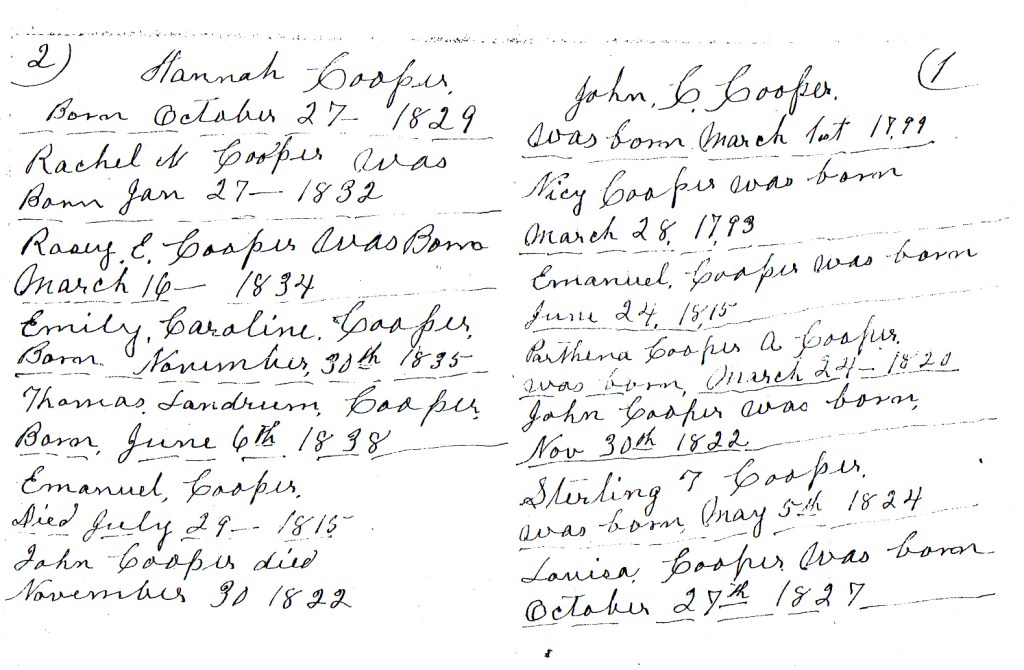 1. Emanuel Cooper was born 21 June 1815 in Spartanburg County, South Carolina, and died 30 November 1822 in Spartanburg County.