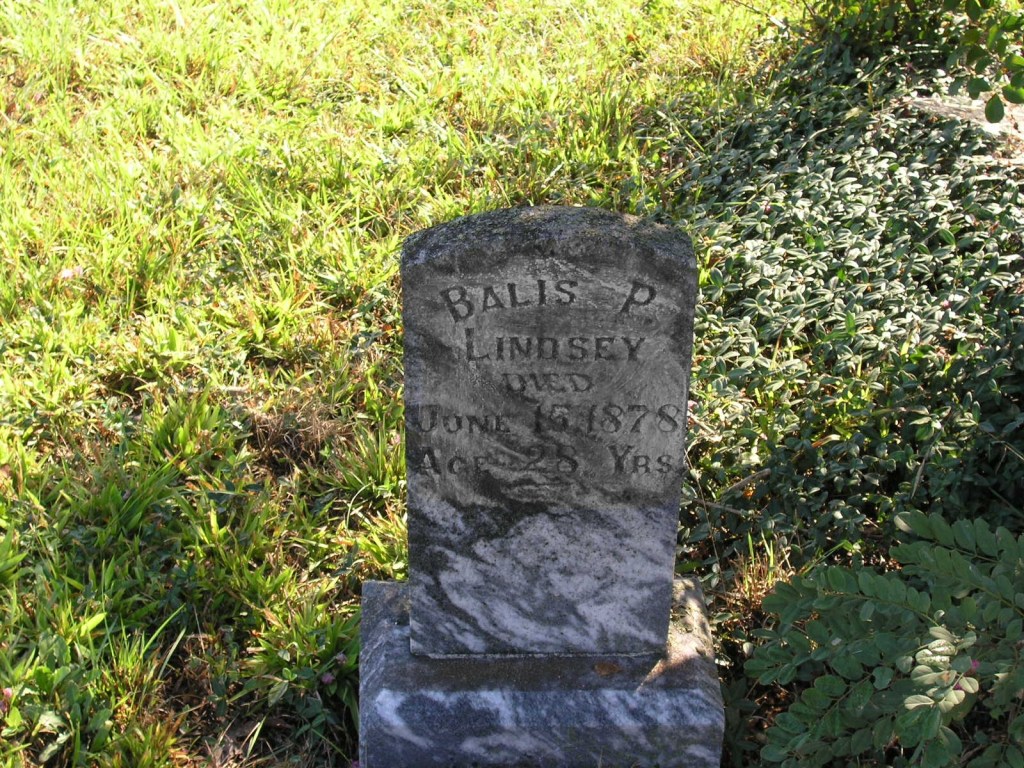 8. Balis P. Lindsey was born in 1850 in Spartanburg County, and died 15 June 1878. His tombstone in Cedar Grove Baptist cemetery, Fountain Inn, Laurens County, gives his date of death, noting he was aged 28 when he died.