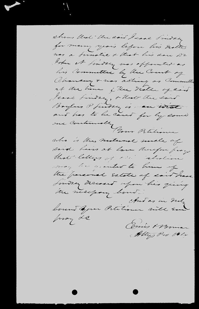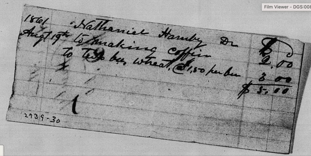 An answer to Lanford’s complaint by Henry’s widow Susan found in this case file affirms this information, stating that Henry had assumed the care of his brother Isaac in 1845. The date of death I’ve just cited for Henry is given by his widow Susan in this legal document. In the loose-papers estate file of Isaac (cited below), there is an account compiled by Henry showing him paying the state asylum in 1847 for care for Isaac; this account is dated 28 February 1848.
