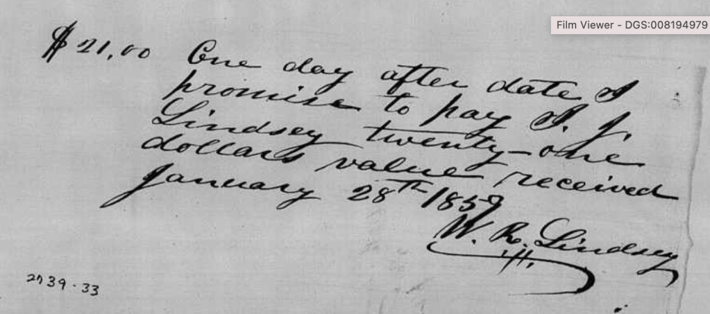 Lanford was filing suit against Isaac’s son John N. Lindsey on behalf of William R. Lindsey’s estate. His petition states that Isaac was a “lunatic” who had been kept under confinement by his brother Henry, who built a house on his property in which to keep his brother confined. Isaac’s brother Henry had assumed responsibility for his brother after Isaac’s son William had initially provided care for his father. When Henry died on 31 December 1862, Isaac’s son John then assumed responsibility for Isaac.