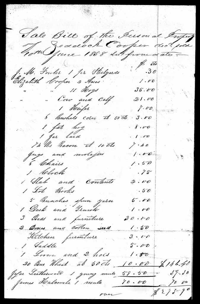 [12] The original copy of the sale account is in Laurens County, South Carolina, loose-papers estate files, box 130, #22, estate of Zadock W. Cooper.