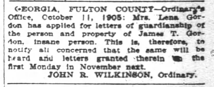 [48] “Mrs. Lena L. Gordon,” Atlanta Constitution (23 March 1911), p. 11, col. 6.