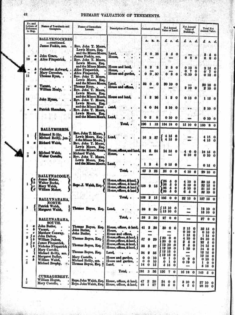[1] Richard Griffith, General Valuation of Ireland: County of Kilkenny, Barony of Knocktopher, Parish of Killahy (Dublin, 1850), p. 42.