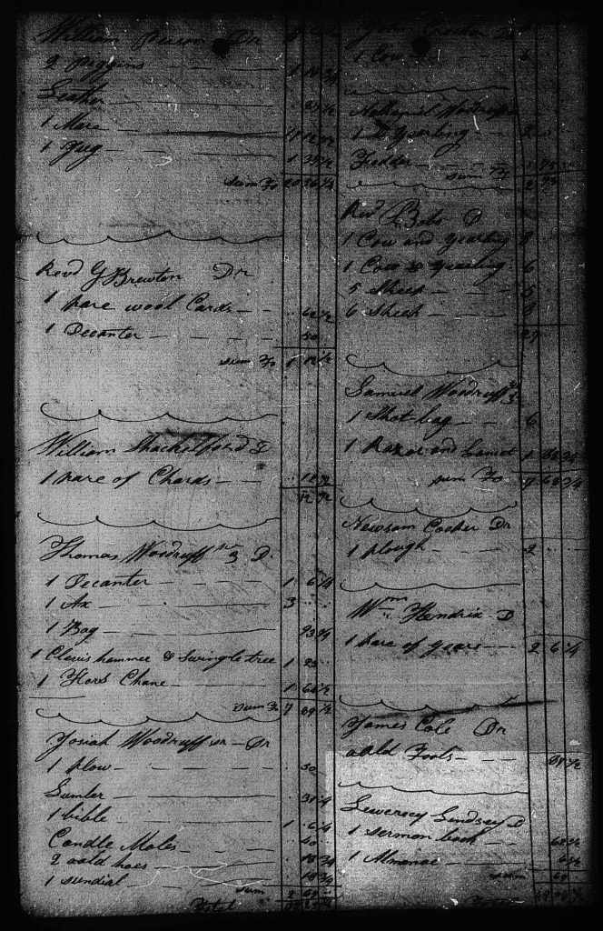 The estate file of James Allen, who married Mary Woodruff, daughter of Joseph Woodruff and Anna Lindsey, contains a letter dated 18 May 1826, which was written by Matthew Allen to Clary Lancaster, who had some of the money of James Allen’s estate in her hands. The letter states, “Honord Madam, these lines is to inform you that there is no doubt of Thomas Lindsey being dead and there is but one living child of the heirs of John Lindsey decd and Jemimah Lindsey thinks herself intitle to his part of money, etc.”[40] The letter suggests that Jemima Woodruff thought that, since her son Thomas had died, his share of James Allen’s estate in right of his father John Lindsey should go to her. What is not clear is why John Lindsey would have been an heir of James Allen. The letter does tell us clearly that of John and Jemima Woodruff Lindsey’s two sons, only James was living in May 1826.
