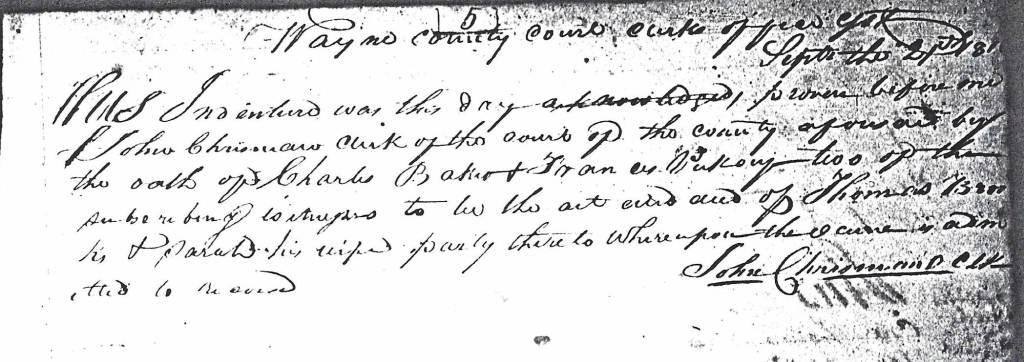 In May 1813, court minutes state that either Thomas Brooks or James Coffey was to be appointed a justice of Wayne County in place of Nicholas Loyd, who was now serving as sheriff.[21] Since court minutes for December 1813 show Thomas Brooks as a justice at that court session along with Abraham Vanwinkle, Cornelius Phillips, and Walter Emerson, Esqs., it appears it was Thomas Brooks who filled this vacancy.[22] In 1823, Thomas’s daughter Margaret would marry Abraham Vanwinkle’s son Ransom Vanwinkle. Abraham’s son Micajah Vanwinkle married Cornelius Phillips’s daughter Mary. The posting I have just linked contains more information about Abraham.
