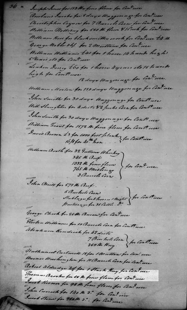 [56] Virginia Auditor of Public Accounts, Public Service Claims Certificates: Frederick County, Thomas Brooks, #12361 (arranged alphabetically by counties; originals at State Library of Virginia; online at Family Search site). See also see Janice L. Abercrombie and Richard Slatten, comp. and transc., Virginia Revolutionary Publick Claims, vol. 2 (Athens, Georgia: Iberian, 1992), p. 378.