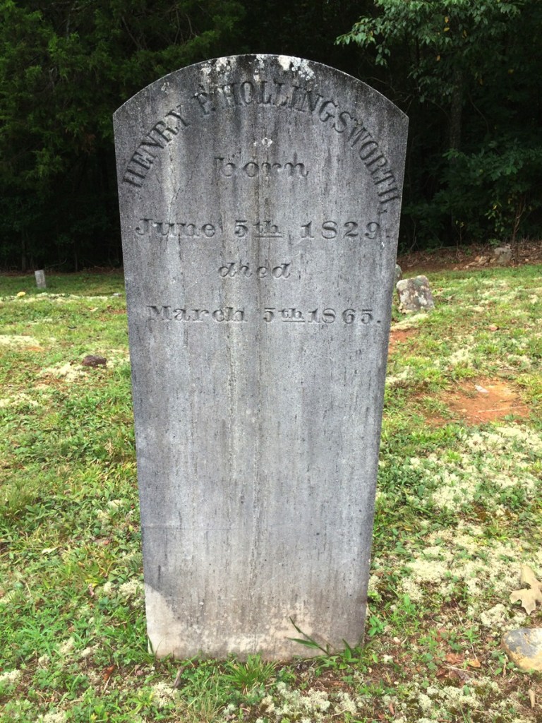 6. Henry P. Hollingsworth was born 5 June 1829 in Gwinnett County, Georgia, and died 5 March 1865 at Nacoochee in White County, Georgia, where he’s buried in the Nacoochee Methodist cemetery with a tombstone stating his dates of birth and death.[58] The 1850 federal census shows Henry living with his sister Hannah and her husband Charles L. Williams in Habersham County, Georgia.[59] Charles is listed as a merchant, as is Henry, whose name on the census also has the word “inmate” written next to it. White County was formed from Habersham in 1857; I think it’s likely that Charles Lathrop Williams and wife Hannah were living at Nacoochee by 1850, with Hannah’s younger brother Henry living with them.