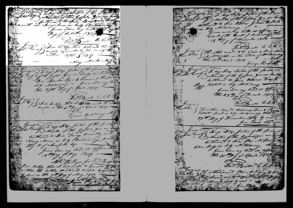 [4] Franklin County, Georgia, Marriage Bk. 1802-1826, p. 28. The date of Benjamin Hollingsworth and Joicy Jones’s marriage is also stated in documents in the Bledsoe-Kelly Collection at Sanford University Library, a collection of correspondence, family charts, and abstracted family and county materials collected and compiled by Maud McLure Kelly, Alabama’s first female lawyer and a member of the bar of the Supreme Court: see Paul McWhorter Pruitt Jr., “Maud McLure Kelly,” Encyclopedia of Alabama.