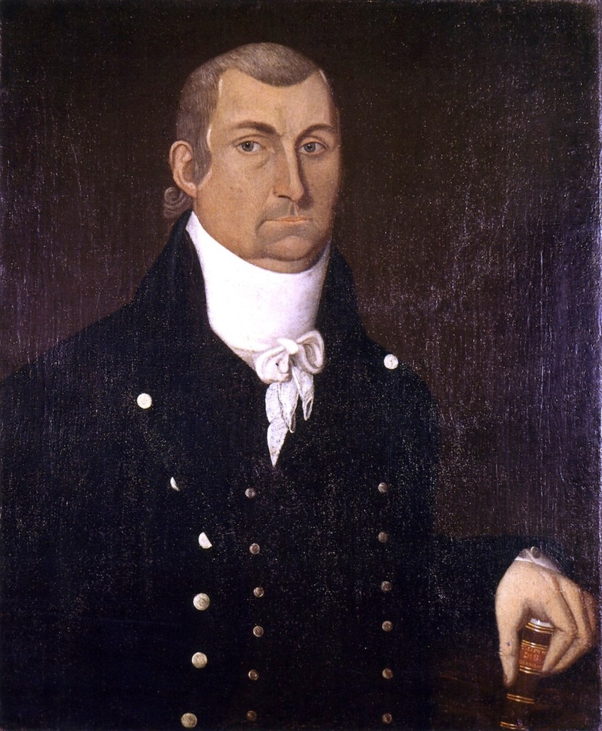 [11] In addition to sources cited supra in n. 48-54, see also Marquis Calmes’s Revolutionary pension application S12674, with an affidavit he gave 9 August 1832 in Woodford County Says he was in 2nd Virginia Regiment under General William Woodford; “Gen Marquis Calmes IV” at Find a Grave, which has biographical information as well as a digital image of Jacob Frymire’s 1806 oil portrait of Marquis Calmes and of an historical marker with information about his tomb; and “Marquis Calmes” at Wikipedia.