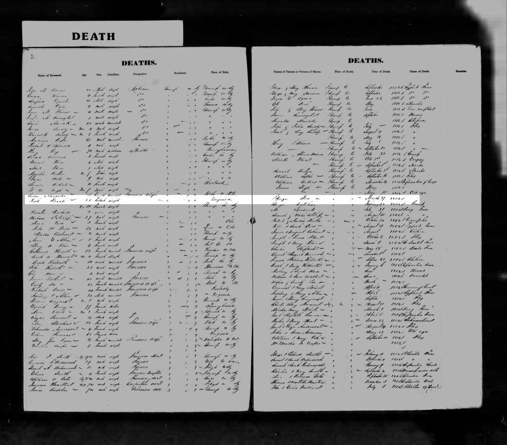 [4] Greenup County, Kentucky, Death Register 1852, p. 2; and 1850 federal census, Greenup County, Kentucky, dist. 1, p. 202 (dwelling 50, family 52; 26 July).