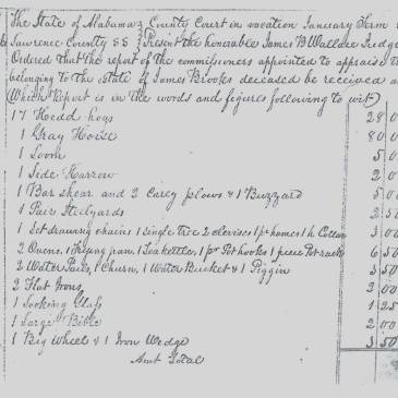 Or, Subtitled: 17 Hedd Hogs, 1 Gray Horse, 1 Looking Glass, 1 Large Bible, etc. In my last posting, I shared with you the information I have about the life of James Brooks, son of Thomas and Margaret Brooks of Frederick and Wythe Counties, Virginia, from his birth in Frederick County in 1772 to the death … More Children of Thomas Brooks (abt. 1747 – 1805) and Wife Margaret: James Brooks (1772 – 1835) and Wife Nancy Isbell (2)