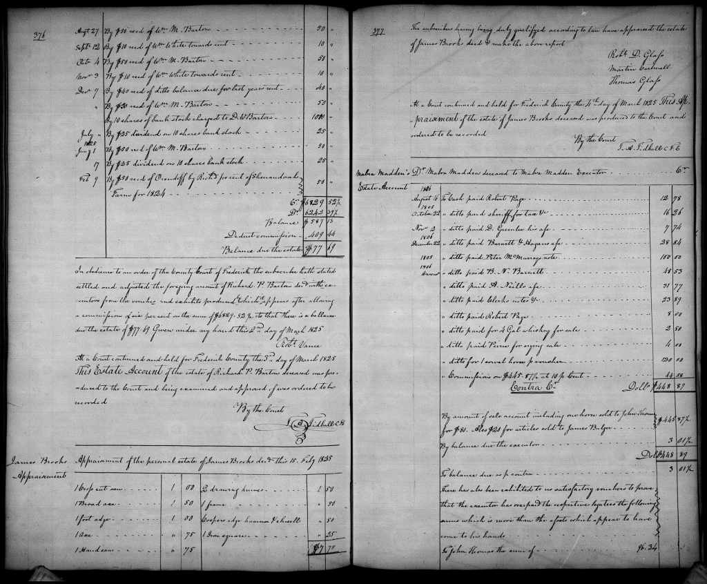 Regarding the lawsuit filed in Frederick County chancery court in 1831 by Peter Peters and wife Susan Woodward Peters against James’s administrator George W. Kiger, as the previous posting in which that case file was discussed tells you, the complaint filed by the Peters is incomplete in the case file, so that it’s difficult to ascertain what was at being litigated. One can infer that Susan and her husband thought they had not received their fair share of her great-uncle’s estate; his will left her a monetary bequest. As noted above and in the posting I’ve just linked, the case file contains, in addition to the complaint, a copy of James Brooks’s will and a February 1828 account discussed in the posting I’ve just linked.