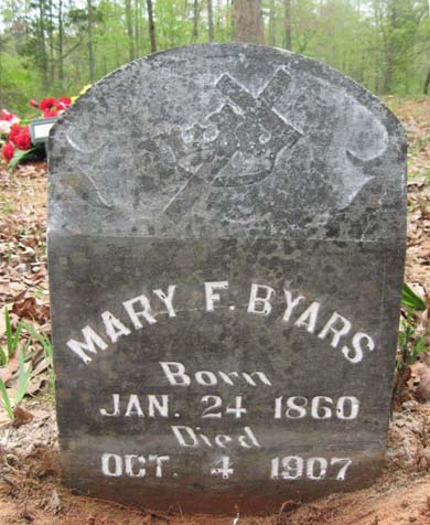 [10] See Find a Grave memorial page of Mary F. Brooks Byars, Bald Knob cemetery, Five Points, Lawrence County, Alabama, maintained by FHTerry with a tombstone photo by FHTerry.