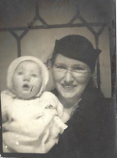 Bernice, who was born in 1914, married Solon Fray Mobley in 1934. The following year, ten months after they married, in September 1935, Bernice and Fray had a daughter Helen. In February 1936, Bernice’s mother Alice Batchelor Murdock died. As I looked at this photo and thought about it, it became clear that this is a photo taken at the time of Alice’s death, in which Bernice, a young mother of 21, is holding her first child Helen, as Bernice wears mourning clothes for her mother. Helen would have been five months old when her grandmother Alice died and when this photo was taken. She did not live to adulthood: she died tragically before her sixth birthday when she was crossing a road and a car hit her.