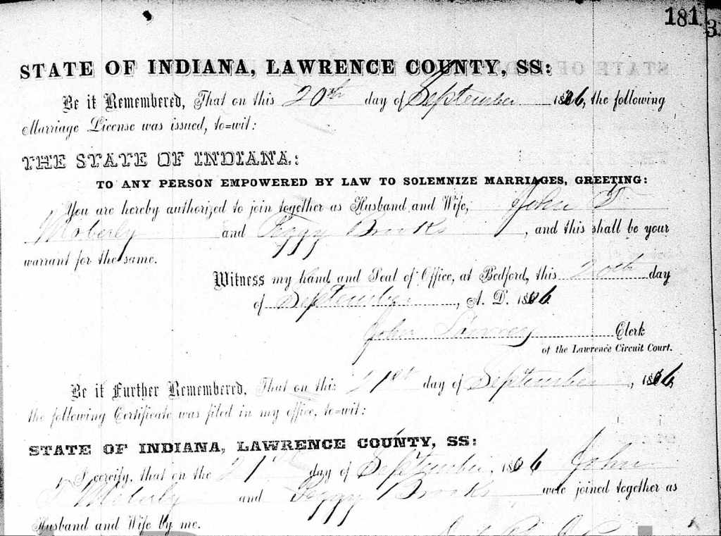 [2] Lawrence County, Indiana, Marriage Bk. 1818-1836, p. 181.