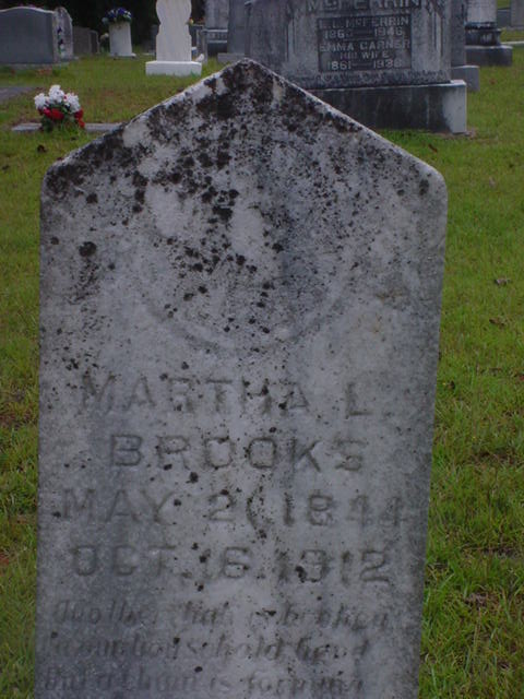 [23] See Find a Grave memorial page of Martha Ledbetter Brooks Brooks, Eggville cemetery, Eggville, Lee County, Mississippi, created by Debra O’Neill, with a tombstone photo by Judy Harden/Barbara Wallace/Matthew Malone.