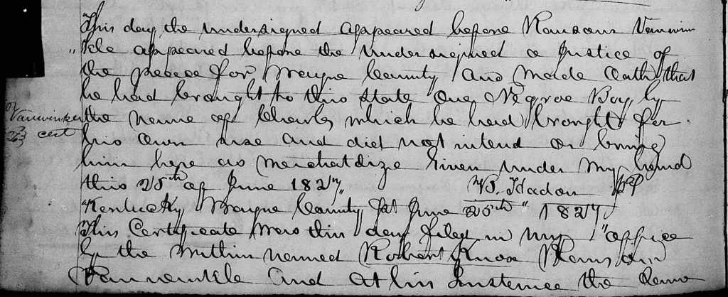 [12] Wayne County, Kentucky, Deed Bk. D, p. 341.