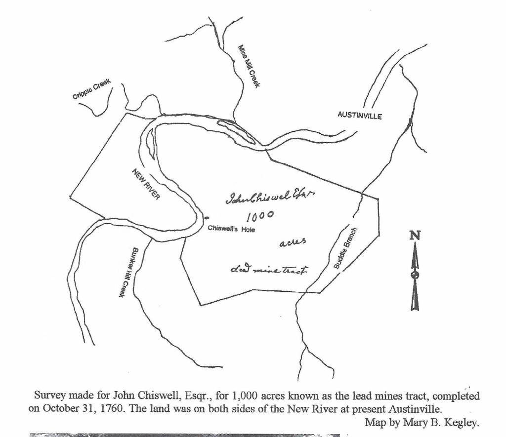 [10] Mary B. Kegley, Early Adventurers on the Western Waters, vol. 1 (Orange, Virginia: Green, 1980), p. 143, citing Lyman Draper, The Preston and Virginia Papers of the Draper Collection of Manuscripts (Madison: State Historical Society of Wisconsin, 5QQ, 54, 58; Early Adventurers on the Western Waters, vol. 3 (Wytheville: Kegley Books, 1995), pp. 219, 222, 275, citing Lead Mines Papers held by the Virginia State Library, and Chiswell Judgments, Wythe County circuit court box 32 (1827). See also Kegley, Wythe County, Virginia, a Bicentennial History (Wytheville: Wythe County Board of Supervisors, 1989), p. 329-333.