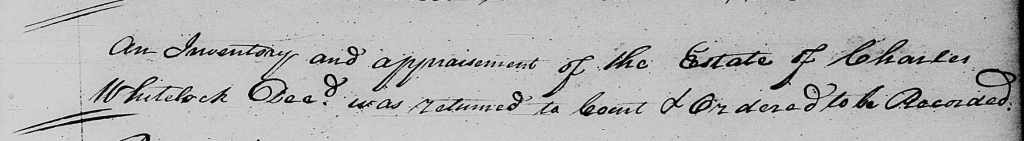 The posting I’ve linked in the paragraph above provides a close reading of the Whitlock vs. Whitlock chancery case file, which contains other valuable pieces of information about Charles, including that, after he married Mary Davies, Charles settled on half of his father’s land, cleared more of it, cultivated it, and built a house, kitchen, and barn. His father Thomas Whitlock allowed Charles the profit of what he raised, but did not ever deed the land to him.