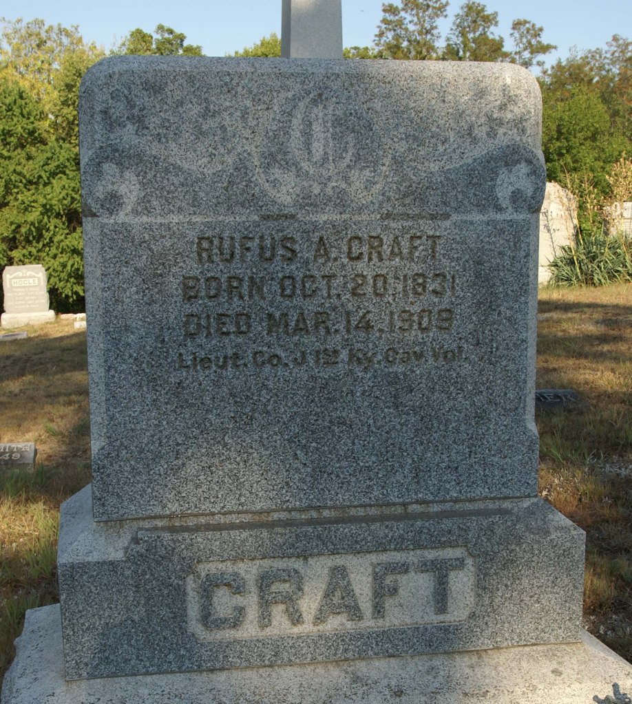 [17] See Find a Grave memorial page of Lt. Rufus A. Craft, created by Charles W. Brown, maintained by Jim Nelson, with a tombstone photo by Jean Pinick.