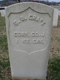 d. Gilbert Bryson Craft was born 17 May 1834 in Cumberland County, Kentucky, and died 4 December 1863 at Knoxville, Knox County, Tennessee. Gilbert was a corporal in Co. J of the 1st Kentucky Cavalry (Union) when he died in the hospital at Knoxville after having been shot in his left arm. He is buried in the Knoxville National cemetery.[20]