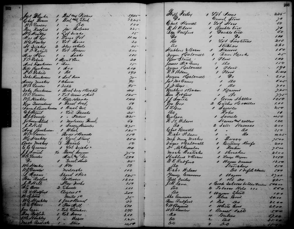 As the posting I’ve just linked states, when Abner Bryson’s lane was divided, James purchased the portion of his sister Catharine and husband John Wilson Williams, ending up with a total of 105 acres adjoining his mother’s land, and this perhaps explains Nancy’s decision to live with her son James in the final years of her life: they had adjoining pieces of land and James was evidently farming his mother’s land along with his own. At Nancy’s estate sale on 12 September 1863, James purchased all of her property, though seven enslaved people listed in the inventory of Nancy’s estate do not appear in the list of property sold, and it seems likely that James obtained possession of those enslaved people, too.[38]