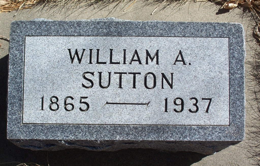 [30] See Find a Grave memorial page of William Abner Sutton, Rockvale cemetery, Rockvale, Carbon County, Montana, created by Sue Sutton, with a tombstone photo by Betty Jo Tindle.
