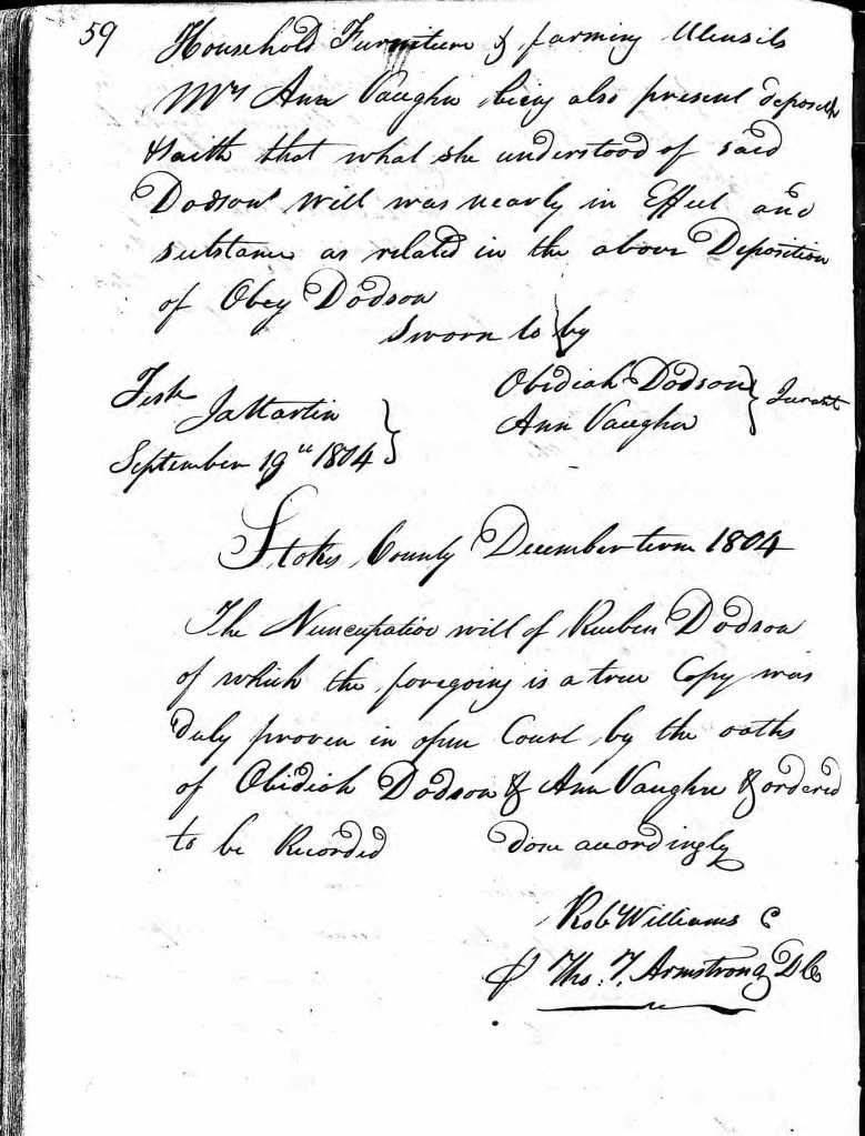 [1] The original will is on file with the North Carolina Archives; see also Stokes County, North Carolina, Will Bk. 2, pp. 153-4.