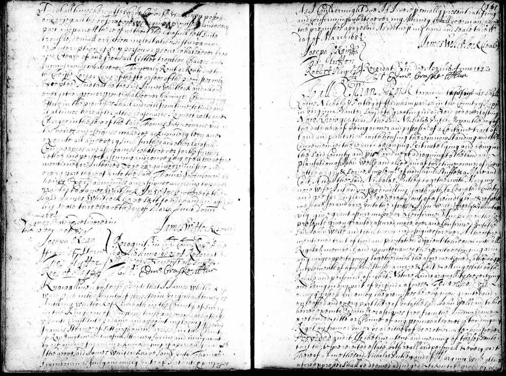 [1] (Old) Rappahannock County, Virginia, Will Bk. 2 1677-1682, pp. 157-165. A transcript of the power of attorney and affidavits of John Whitlock and Johanna Harris is in Ruth and Sam Sparacio, Deed & Will Abstracts of (Old) Rappahannock County, Virginia, vol. 2: Deeds & Wills No. [2] (1677-1682, pt. 1) (McLean, Virginia: Antient Press, 1989), pp. 47-9. This transcript is also found online at pages for Thomas Whitlock of Essex County, Virginia (died bef. 13 June 1678) and John Whitlock of King William parish, Virginia (died 10 June 1746), at the WeRelate site. An abstract of these documents is also in Polly Cary Mason, Records of Colonial Gloucester County, Virginia, vol. 2 (Newport News, Virginia: George Carrington and Polly Cary Mason, 1948), p. 95.