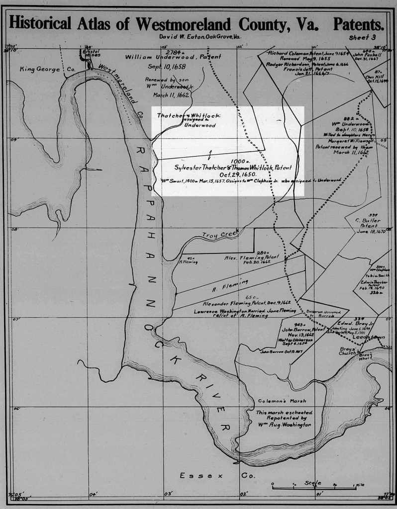 [14] David Wolfe Easton, Historical Atlas of Westmoreland County, Virginia: Patents, Showing how Lands Were Patented from the Crown & Proprietors of the Northern Neck of Virginia, etc. (Richmond: Dietz, 1942), p. 61.