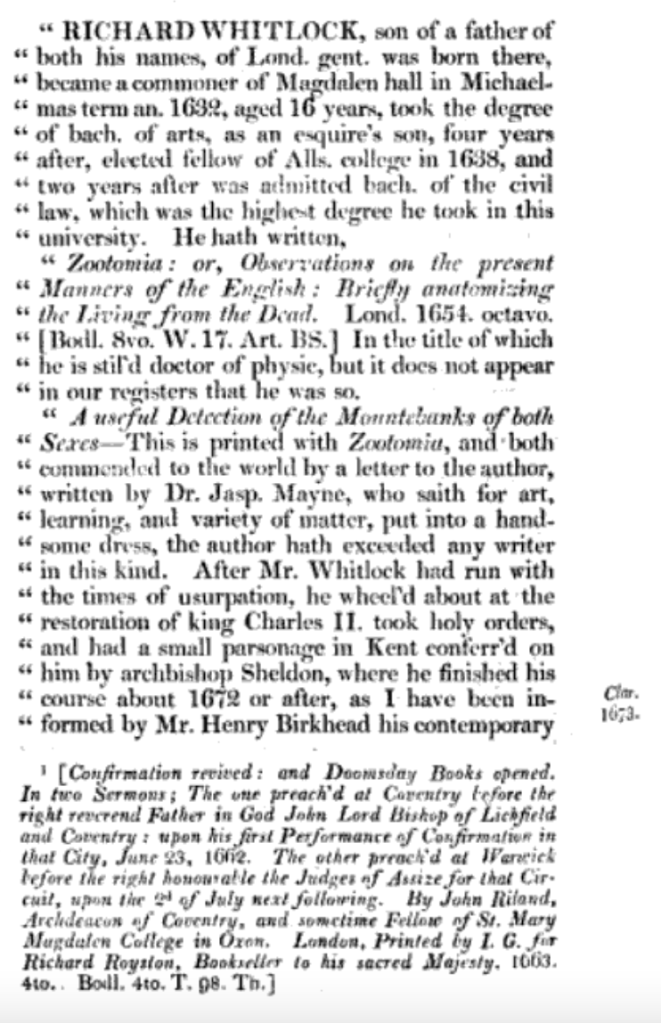 Or, Subtitled: “This Mr. Whitlock was a man of wit & learning”
