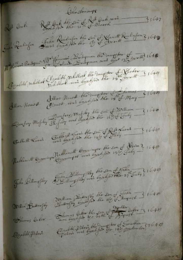 He also thinks that Richard is likely the “Docter Whitlock” whose daughter Elizabeth was baptized at St. Dionis Backchurch in London on 18 April 1648 and buried at that church on 26 March 1649.[11]