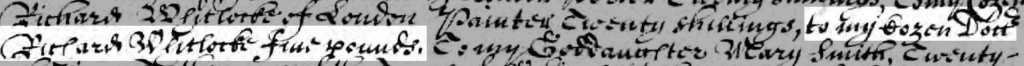 On 24 February 1648, Richard’s mother Katherine Burchett Whitlock made her will in London (Prerogative Court of Canterbury 11/207, pp. 320-1). Katherine named her son Richard, along with his brothers Robert and John and sister Katherine Jordan in the will. Her will left to her son Richard £400, stipulating that this money was to be held in trust by Robert and John, along with Thomas Jordan (husband of Katherine’s daughter Katherine) and Richard Palmer, with yearly payments made to Richard Whitlock. As Peter Whitlock states in offering a transcript of the will in Whitlock Family Newsletter (“Will of Katherine [Burchette] Whitlock 1648,” Whitlock Family Newsletter 35,1 [March 2016], pp. 4-5), several years after Richard had deeded his inheritance of the manor of Beches to his brother Robert, their mother remained