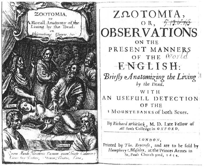 The intellectual bearings of Zootomia are perhaps best discovered by its informal relation to the attack upon learning and academies which broke out around the middle of the century (George Williamson, “Richard Whitlock, Learning’s Apologist,” Philological Quarterly 15,3 [July 1936], p. 259).