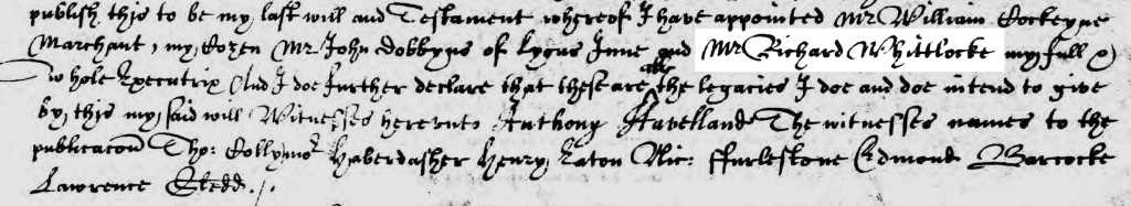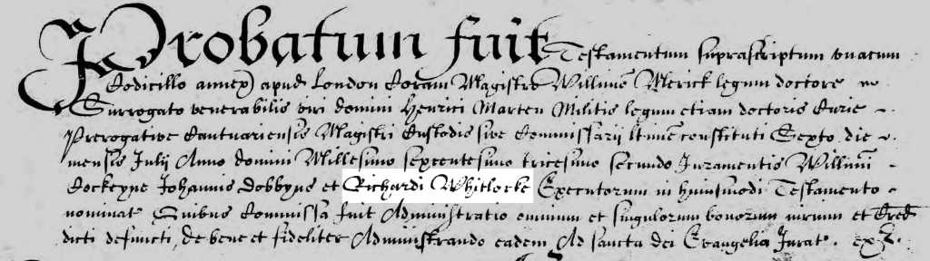 [14] Prerogative Court of Canterbury 11/190, pp. 294-5. A transcription of the will by Peter Whitlock is at “Will of Richard Whitlock 1642,” Whitlock Family Newsletter 33,1 (March 2014), pp. 3-4.