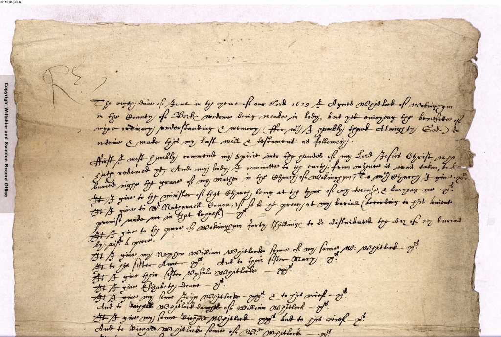 Agnes, wife of John Whitlock, is named as William Planner’s daughter in his 16 July 1659 will made at Wokingham in Wiltshire and identifying William as a clothier of that place.[10] About John and Agnes, the will states,